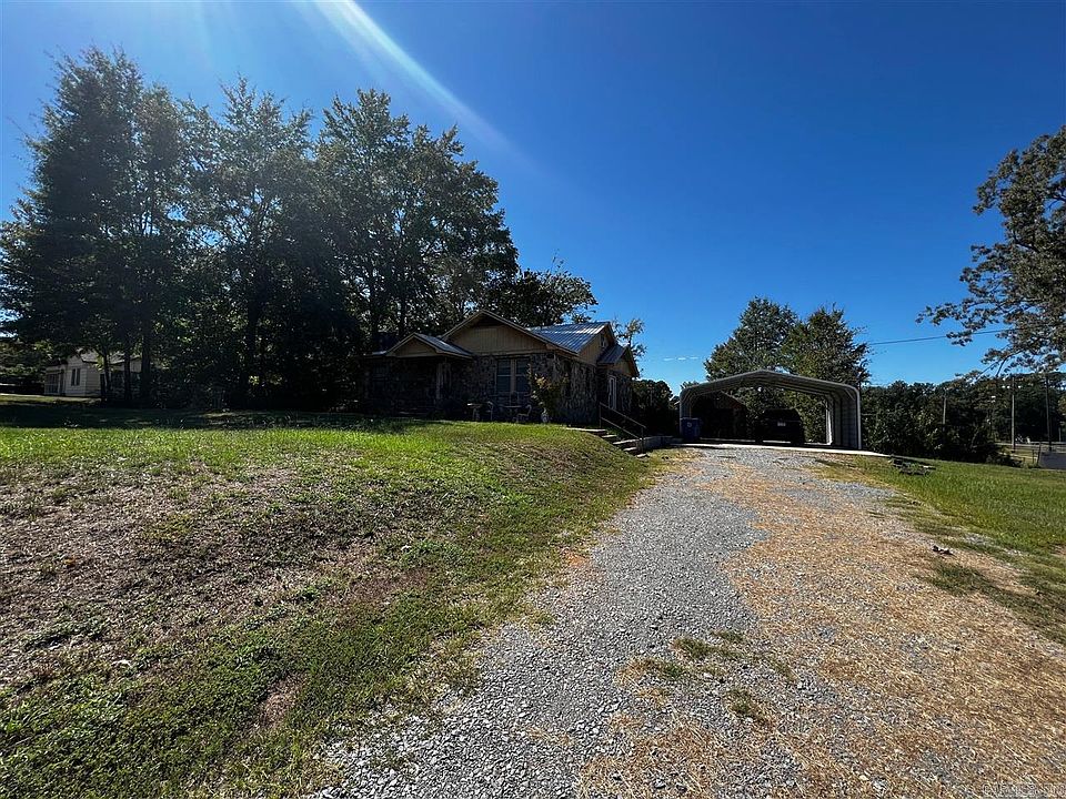 Check out this cute little house ready for you to put your personal touches on! 3 bed 1 bath with separate dining area. Floor to ceiling rock fireplace in living area. Nice size sunroom area or office space located off the kitchen. Large lot, storage building, and new metal carport with concrete slab. Don't miss the floored attic that could be converted into extra living square footage. Cannot get much better then this! Metal roof approx only 2 years old. Home is being sold "as is"