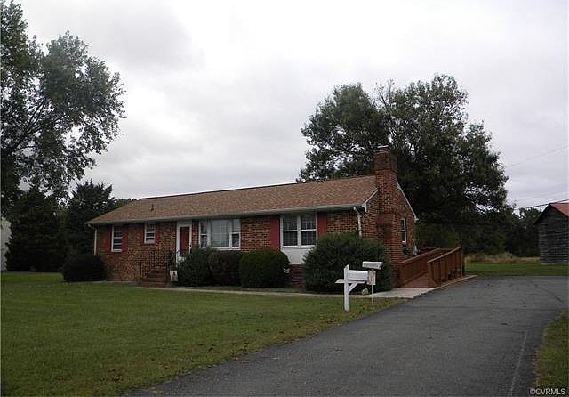 LOADS OF UPGRADES TO THIS CHARMING RANCH LOCATED ON THE VA. CAPITOL BIKE TRAIL WITH CONVENIENT ACCESS TO I-295; 3 REDUCED 10K; $180000 APPRAISAL IN HAND. ONLY 5 MILES TO WHITE OAK MALL WITH PLENTY OF EATERIES. RURAL COUNTRY SETTING ON 1 ACRE PLUS LOT. 1/4 MILE TO 295; 3 MILES TO I-895. OWNER INSTALLED A NEW DIMENSIONAL-SHINGLED ROOF AND HEAT PUMP, LAMINATE FLOORING, SOME UPGRADED APPLIANCES, FRESH INTERIOR PAINT ALL WITHIN LAST 15 MONTHS. ALL BRICK 3 BDRM, 2 BATHS; FEATURING A LIVING ROOM AND FAMILY ROOM (FIREPLACE) HOME WITH PAVED CIRCULAR DRIVEWAY, 2 DETACHED UTILITY SHEDS. ALL WAITING FOR THE "JUST STARTING OUT FAMILY" OR EMPTY-NESTER FAMILY". CALL FOR YOUR VIEWING! (PUT IN OFFER) MAKE THIS YOUR CHRISTMAS GIFT FOR 2017.