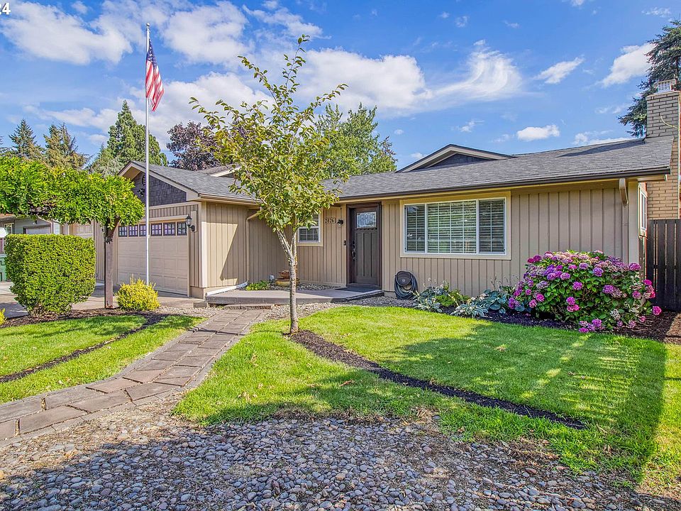 OPEN HOUSE Canceled due to accepted offer! Step into a peaceful paradise with this beautifully renovated home & oasis like garden spaces. Highly sought after school district. Centrally located, close to Oakway and Gateway Malls and Autzen Stadium. Big Ten Conference fans pay attention to this one! Entertainers’ dream! Inside you will find 4 bedrooms, 2 bathrooms and an office. Fresh paint, new LED lighting, newly refinished hardwood and tile floors throughout. New gas fireplace, newer gas furnace and air conditioning. Stunning gourmet kitchen features granite countertops, stainless steel backsplash, all new or newer appliances, double sinks, with an eat in bar off the dining room. Kitchen connects to a spacious butler’s pantry with ample storage and laundry facilities, and French doors lead to the spacious covered outdoor living space with 50-inch TV inside custom media cabinet. Primary suite has a private entrance to backyard pergola, offers an extra-large walk-in closet with organizers, ensuite bathroom with heated travertine tile flooring and tile tub surround. 2 car garage with attached 29ft x 14ft workshop/3rd car garage. Workshop has separate electric panel including 220V outlet, large, lofted storage, roll up door and wide double door access to the back yard. Additional finished 12ft x 10ft studio perfect for artists, or as an extra workspace or yoga studio. Exquisite landscaping with automatic sprinklers, several water features, fire pit, patio areas, multi-level raised garden beds, composting bins, mature fruit trees, custom greenhouse and tool shed. Shared well to offset city water costs. Don’t miss this one!