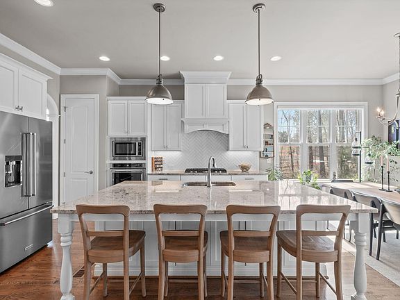 Stunning custom built home in coveted Bella Casa nestled on a private and rare, wooded .38 ACRE HOMESITE. Custom features abound from elegant millwork including ornate ceiling details, arched openings and built ins. Site finished hardwood flooring thru primary living areas. Stately 2 store foyer. Large dining room ideal for entertaining leads you to open and grand family room with wall to wall built in shelving and gas fireplace. Incredible Chef's kitchen with center island, granite tops, elegant tile back-splash and stainless steel appliances including wall oven/microwave and 5 burner gas cooktop. Sun filled breakfast nook overlooks gorgeous tree lined yard with abundant windows for natural light and view of expansive outdoor space. Main level primary suite with opulent bathroom featuring soaking tub, oversized shower, dual vanity, water closet and huge walk in closet. 2 more bedrooms downstairs with a shared full bathroom. Oak stairs lead you to incredible bonus space and large 4th bedroom. Tons of extra storage in walk in attic. Incredible screened in porch overlooks vast yard space with mature tree line and tons of space to garden, play or just enjoy peacefully. Minutes to downtown Apex, Beaver Creek shopping center and major highways.