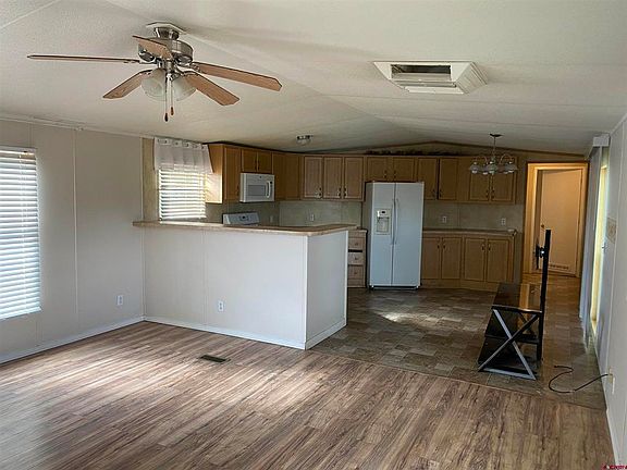 Lovely views from this clean home in the Vista Verde Village park. The home has a large living room, 3 bedrooms, and 2 baths, enclosed yard with large willow tree and dog house. The master bedroom has a walk-in closet and the bathroom has two sinks plus a shower and soaker tub. The home has been freshly painted. A storage building is included. The park offers an affordable space lease with new management in place. This is a good home for your happy family.