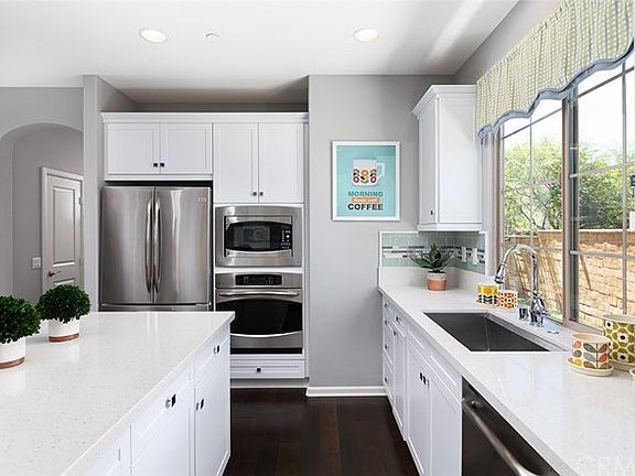 PRICED TO SELL - BEST PRICE IN COMMUNITY!! DON'T MISS OUT ON THIS ONE! Situated in the gated community of Campanilla, this immaculate property, located on a corner lot, offers high-end modern upgrades & designer flair. A gated entry leads to the private courtyard & features custom hardscaping and a large entertaining area. The spacious floor plan boasts 2418 Sq. Ft., 4 Beds, 3 Baths & large loft area with a full bed and bath on the main floor. The gourmet kitchen offers white custom cabinetry, large center work island, custom backsplash, white Quartz countertops, stainless steel GE Profile appliances. The upgraded wide plank wood flooring is continued throughout the entire home as are plantation shutters. The living room offers gas fireplace, custom built-ins, sliding glass doors that open to the outdoor patio area. The master bedroom is spacious & airy with plantation shutters, dual walk-in closets with custom built-ins, and en Suite master bath with double vanities, separate shower & tub. Two secondary bedrooms, a full bath also with dual vanities, individual laundry room and spacious loft complete the upstairs. The spacious garage offers epoxied garage flooring, ample storage and a 220V electric vehicle hook up. The property has a low tax base & HOA dues, NO MELLO ROOS & approximately 5 years remaining on builder's warranty. Located close to shopping, dining, entertainment and top area beaches. Call today!