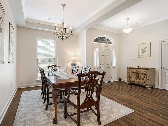 STUNNING 4 bed 2.5 bath home with whole home generator, office, oversized 4 car garage on 2.42 acres with stocked pond! This all brick beauty has it all and features an open floor plan with wood look tile, formal dining & breakfast area, kitchen with granite counters, white cabinets, luxurious primary suite with tray ceiling, dual vanities and walk in closets and dedicated office! Large garage can double as shop area and opens to gorgeous backyard with Gazebo overlooking stocked pond! High and Dry must see!