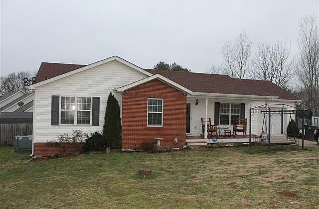 Great location! Large great room with vaulted ceiling, dining area, kitchen with convenient utility area, large master bedroom with walk-in closet, large spacious garage, fenced-in back yard with pool and 2 storage buildings. Great front porch!