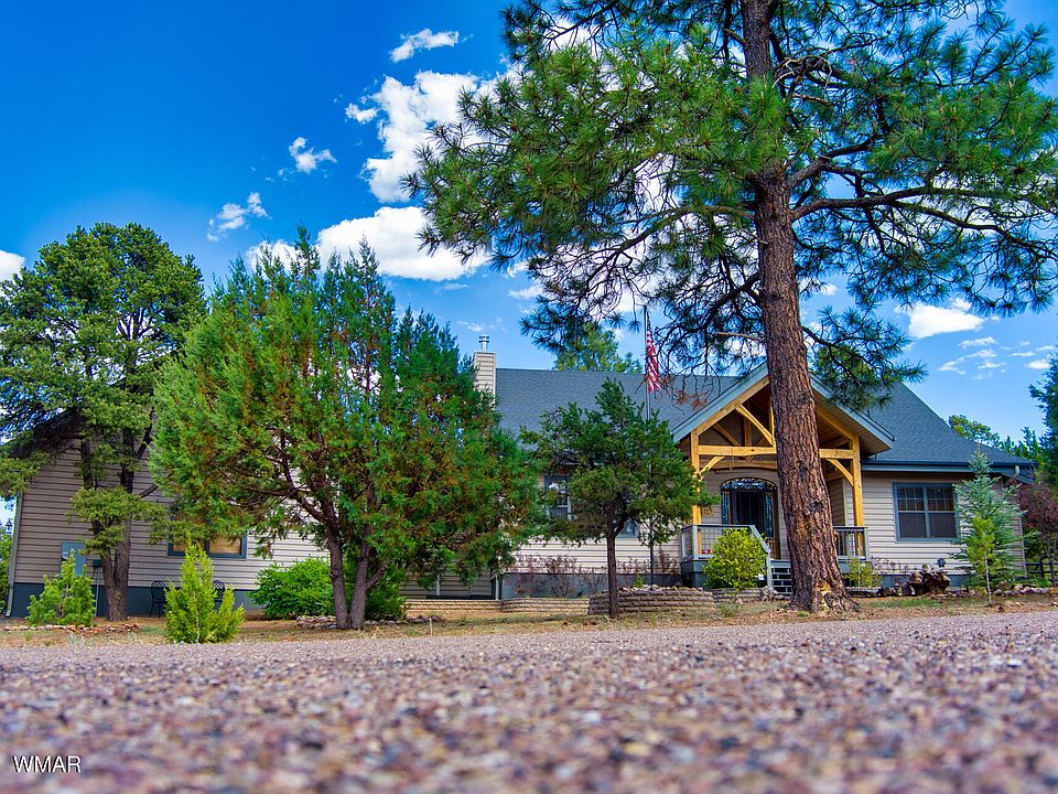An exclusive red and white oak timber frame home adorning a 1.03 acre tree studded homesite backing to the National Forest. This amazing home features 5200 SqFt, 6 BR/3.5 BA, a great room, a lower level family room with a freestanding wood stove , am amazing gourmet kitchen, hand finished knotty alder cabinets, wine cooler, Thermador gas stove, granite and porcelain counter tops, porcelain wood tone tile, radiant in floor heating, on it's own boiler, on demand tankless water heater, a large laundry room/mudroom with cabinets and sink, two HVAC air handlers, and a central vacuum system The exterior boasts low maintenance siding,, roof is 10' SIP panels, walls are 8' SIP panels, 26x40 three car garage with a game room above, fully fenced back yard, and a large fire pit and sitting area.