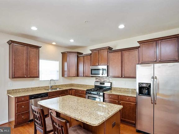 This brick front and side four-year-old end unit townhouse with three finished above ground levels of living space offering three bedrooms, two full and two half bathrooms. Enter the lower-level family room with two windows, hardwood flooring, a closet and a hallway leading to the powder room, the rear two car garage and carpeted stairway leading to the main level. The stairway from the lower level to the main level includes a window. The main level includes hardwood flooring, a gourmet kitchen with a bay window, table space, a pantry, a center island, stainless steel appliances including a built-in microwave, granite countertops, a generous number of cabinets, sliding glass door leads to the full length rear Trex deck; a dining area, a powder room; a living room and a carpeted stairway leading to the upper level. The upper-level features three carpeted bedrooms, two full bathrooms with bathtubs and a full-size stacked washer and dryer. The ownerâs bedroom includes a walk-in closet, soaking tub, a separate shower, private water closet, double vanity and a window. This property qualifies for 100% Financing ($0 Down) via USDA Loan.