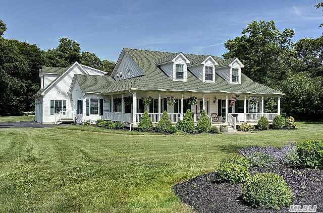 This Delightful Custom Built Country Farm Cape is Spacious and offers 5 bedrooms 4.5 bath, a Wraparound Porch, Gourmet Kitchen with High End Appliances, Formal Dining Room, 1st Floor Master with Jacuzzi Tub, Den with Fire Place leading to a Large Deck and a Pool. Also a 3+ car Garage and a Bonus Room. Situated on 1.81 Acres beautifully Landscaped and Fenced this property embodies all the wonderful characteristics of the North Fork. Bring your Horses!