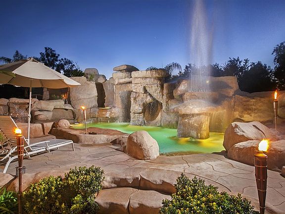Maui in Your Backyard! Experience the feeling of a destination vacation every day in this beautiful 3BR/4BA estate plus 1BR/1BA guest house, resort-style pool, RV pkg, fruit trees, amazing weather, and more! Designer finishes, granite counters, stainless appliances, crown molding, travertine inlaid tile floors. Sumptuous master suite w/pvt office or gym. Pool features 9 waterfalls, secluded "grotto" spa, and fountain. Party-sized patio w/fireplace, palapa dining, gardens. No HOA fees. Bonsall schools.