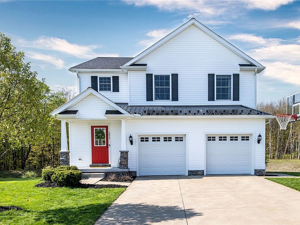 Imagine enjoying the peace and tranquility of nature year round from your own backyard overlooking 21 acres of woods and a pond! Deer, blue heron and other wildlife are frequent visitors and the woods contain walking trails exclusive to the neighborhood! The outdoor setting is outstanding, but this pristine, newer built home is absolutely gorgeous inside too! The stunning foyer features a arched wood entry leading to the wrought iron staircase and balcony and then opens up to a great room, kitchen and dining built for entertaining. The kitchen features rich maple cabinets, granite and a butcher block island. Large mudroom off the garage has tons of storage space! Upstairs you'll find double doors into the spacious bedroom suite and also a desirable 2nd floor laundry room! Located in the popular Trails at Five Points Subdivision and Fort LeBoeuf schools, you'll be central to everything Erie has to offer and just minutes to shopping, I-90 and I-79! Association maintains pond and trails.