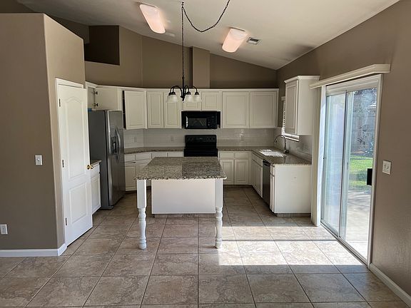 This lovely home has 3 bedrooms, 2 baths with a 3 car garage. It is approximately 1750 square feet. The updated kitchen features new granite counter tops, backsplash and an oversized granite island with bar seating. You will find vaulted ceilings, gorgeous laminate flooring and updated light fixtures. Large travertine tiles make this home anything but ordinary. The master suite has a large soaking tub and separate shower, dual vanity and walk in closest This home is located in the Clovis North school district and is within walking distance to Riverview Elementary. Tenant Pays: Power/Water/Trash/Renter's Insurance Owner Pays: Yard Care No Pets!