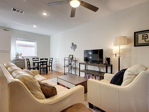Stellar modern contemporary condominium home with attached 2 car garage. Minutes from downtown and UT! Luxury finishes through out including hardwood flooring, ultramodern tile flooring, amazing kitchen with stainless steel appliances, quartz counters and striking back splash. Open concept living and dining perfect for entertaining with balcony. Walk or bike to Downtown, East Austin eateries, parks and trails. Tenant pays for utilities. One time pet deposit of $350.