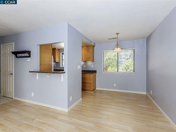 Light and Bright Second Floor End Unit With Fireplace in the Gated Galindo Woods Community. Large Private Deck off Living Room, Updated Kitchen with Granite Countertops and Stainless Steel Appliances. Large Bedroom with His and Her Closets. In-Unit Washer and Dryer, Fresh Paint and New Laminate Wood Flooring. Two Assigned Parking Spaces and Storage Unit. Community Pool. Close to Bart, Todo Santos Plaza, Farmer's Market, Shopping and Freeway Access. Pet Friendly and No Rental Restrictions.