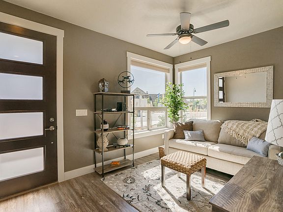 2017 Parade of Home's Award Winner and former model home in Riviera Court in Riverstone by a national award-winning builder. This home is loaded with high-end interiors - fully tiled walk-in showers; upgraded doors with frosted panes to master BR and bath. Gorgeous fully tiled backsplash in kitchen and master bath; Quartz countertops, stainless steel appliances, and radiant floor heat! This home is LEED Gold, Energy Star, and EPA Indoor AirPlus certified. Over 1,550 sqrt of universally designed living space with 14 ft. vaulted ceilings. Low HOAs include front yard landscaping and snow removal of drive and walkways. Only a few minutes walk/run/roll to the Centennial Trail. Enjoy all of the amenities of Riverstone - shopping, restaurants, movies, and more! Owner/Agent.