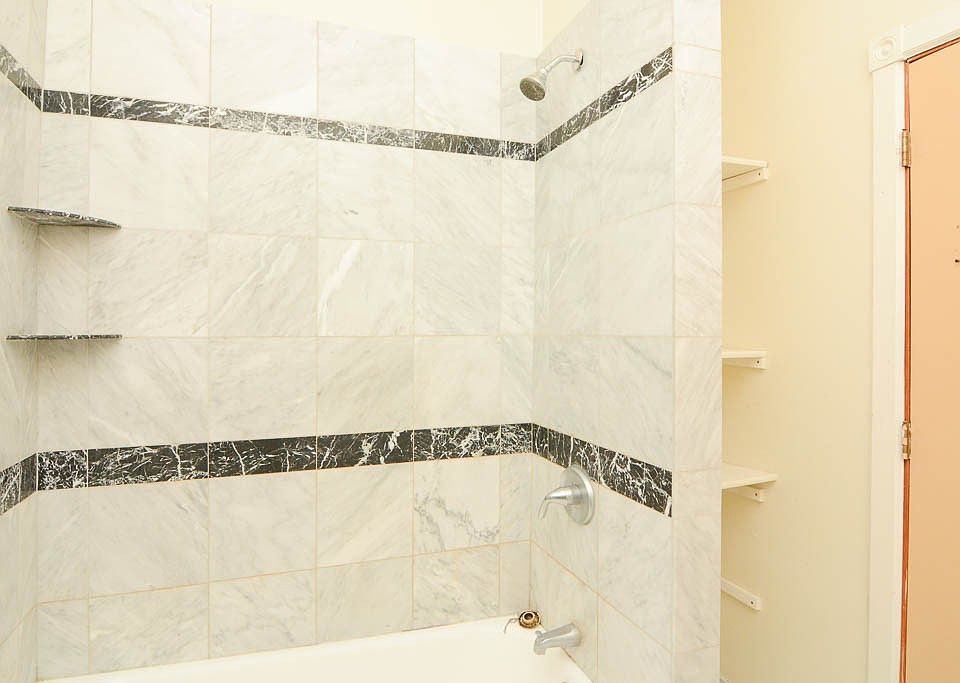 Tall ceilingsQueen size bedroomsIn-unit laundryGood closet spaceWhite marble bathroomHardwood floorsStainless steel appliances
