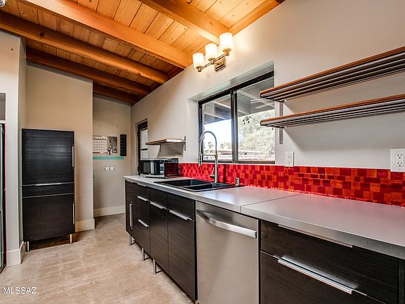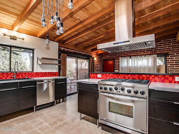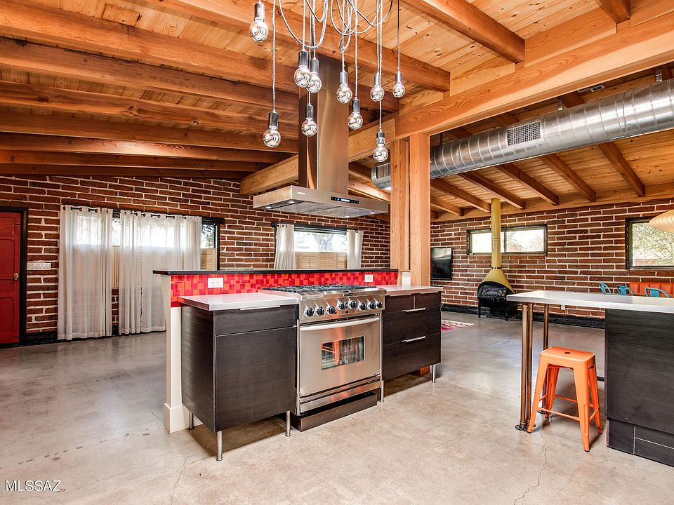 Mid-Century Ranch Style meets Industrial Chic! Super Cool! 2 Bedroom, 2 Bath, burnt adobe construction with large attached studio guest house withbath and kitchenette. Located in peaceful near north neighborhood near U of A with convenient walking distance to the Campbell Avenue restaurants and shopping! Open the door to thedramatic great room with polished concrete floors, exposed spiral ductwork, sand blasted fir and pine wood ceilings and adobe brick walls! You'll love theupdated kitchen with stainless steel appliances including Kitchen Aid 6 burner gas stove with dual oven! The very spacious guest studio is great for familyand guests. Features a new bath and kitchenette!