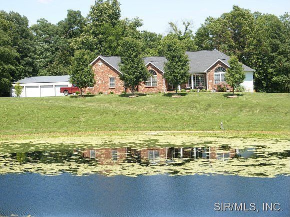 Here you go, out but not too far out is this Ranch home situated on 5 acres with a lake/pond stocked with 4 kinds of fish. If you are in need of extra storage for your toys, you will love the additional 4 car (30 x 50) bay garage with electric too. This home was custom built with many features including solid wood 6 panel doors with lever handles, attic fan and stone fireplace. Homeowners recently updated kitchen with a beautiful Cambria countertops, new lighting and stainless steel appliances. The compact U-shaped kitchen has an abundance of cabinets, counter space and great walk-in pantry. Master Bedroom is spacious with walk-in closet, while Master Bath has an additional walk-in closet so you have his/her closets. Master bath has large vanity with double bowl sinks, corner garden tub and stand up shower. You will love the amazing sun porch that walks out onto an above ground swimming pool. Full unfinished basement just waiting to be completed for added square footage!