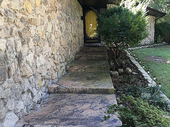 - Exterior features: Stone, Wood