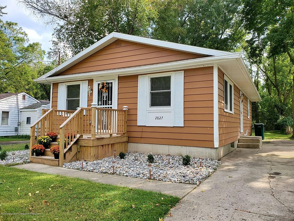 Welcome to 2827 Reo Rd, Lansing MI! This completely remodeled home has a newer roof, furnace, water heater, kitchen, bath, flooring, paint, fixtures, doors, blinds and so much more. This home is bright and open. New kitchen is complete with all new cabinets, counter tops, flooring, fixtures and high end stainless steal appliances. The gas stove has a griddle and there is microwave! Newer mechanicals include a 96% efficient furnace from 2017. Large kitchen has eat in area and lots of the new windows offering much natural light. All windows have new cordless blinds and are double hung for easy cleaning. All 3 bedrooms are good size with fresh paint, new 6 panel doors and fixtures. New bathroom has tons of storage and is bright and clean. This home leaves nothing to do but move in! Taxes are non homestead. Room sizes are estimates.