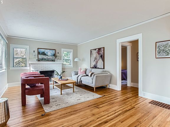 Classic Portland bungalow with charming details! New interior paint, refinished hardwood floors on the main level and new carpet upstairs make this home move in ready. Real wood burning fireplace and picture hanging moulding add to the charm in the living room. Updated bathroom with new toilet and pedestal sinks. Enjoy the heated tile bathroom floor and tile shower. Darling kitchen with freshly repainted cabinets and updated lighting. Upstairs is large primary bedroom with ample closets and extra space for reading nook or office. Full basement for storage or future growth. Front yard drainage system installed, new concrete porch and new sewer line. Spend the summer in the huge, fenced backyard or just pop out the door and walk to Multnomah Village. Don’t miss this one! [Home Energy Score = 3. HES Report at https://rpt.greenbuildingregistry.com/hes/OR10236324]