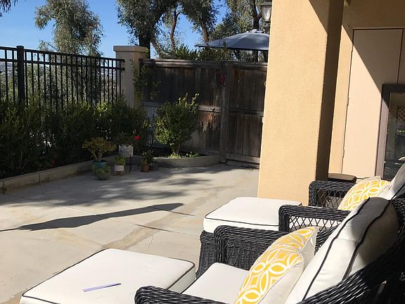 **Reduced $100/month Rancho Niguel Mirador Tract Ground level condo with Sunset and city lights view!! Spacious living room that adjoins the dining/kitchen area that leads to totally Private backyard. Master bedroom features walk in closet, mirrored wardrobe, and dressing area. Inside laundry with new stackable washer/dryer. Attached garage with custom floor allows direct access to condo. 1 additional covered carport is included. Refrigerator included and water/trash is included in rent. Minutes to 73 toll/freeway and walking distance to school, shopping, and restaurants. Must have good credit.
