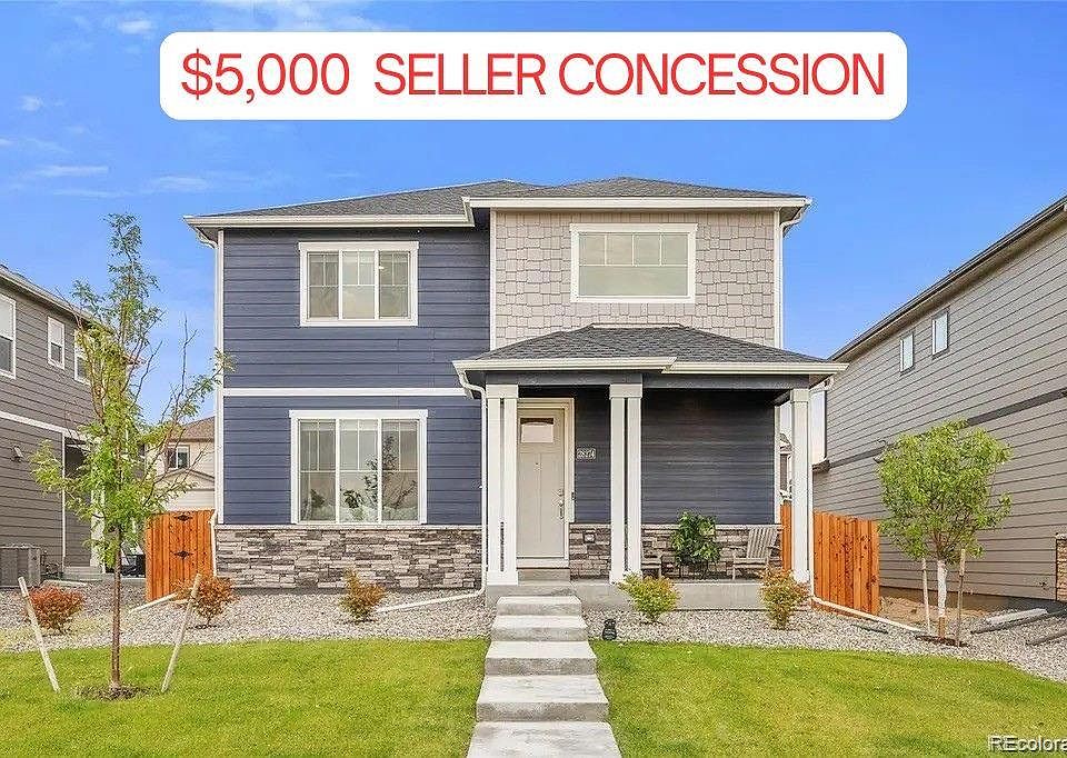 $5K SELLER CONCESSION! Welcome to this beautiful 2023 built single family home where style, comfort, & functionality come together. With no neighbors to the front, you’ll enjoy open views & a peaceful spacious front yard w/ charming covered patio, perfect for morning coffee or evening sunsets. Inside, sunlight pours into the open concept family & dining room, leading to a beautifully upgraded kitchen w/ large eat at counter, stainless steel appliances, granite counters, gas stovetop, pantry & a convenient powder room down the hall. The main floor is the heart of the home and perfect for cooking & gathering. Warm & inviting, the spacious family room seamlessly connects to the kitchen & dining area. Before you make your way upstairs, take note of the expansive storage closet under the stairs. Upstairs, the primary suite offers a spacious walk-in closet, full bathroom ensuite w/ walk in shower & dual sink vanity. Down the hall, there are 3 additional guest bedrooms & a well appointed full guest bath featuring dual sink vanity & tub/shower combination. Convenient 2nd floor laundry room located in the hallway w/ a bonus linen closet.Outside, the fully fenced backyard is ready for summer barbecues, playtime, and pets, while the 2-car attached garage with driveway, boats additional guest parking to ensure plenty of room for visitors. Parking is also available on the street in front of the home. The private fenced back yard is xeriscaped for those who appreciate low maintenance or add grass/artificial turf if you wish. 15 minutes to DIA & close to I-70 for easy access to Anschutz Medical Campus, Childrens & VA Hospitals, & Buckley Space Force Base. Down the street from the new Sky Ranch Academy K-8 Charter School. This home qualifies for the community reinvestment act providing 1.75% of the loan amount (up to $7000 max) as a credit towards buyer’s closing costs, pre-paids & discount points. CONTACT LISTING AGENT FOR DETAILS.