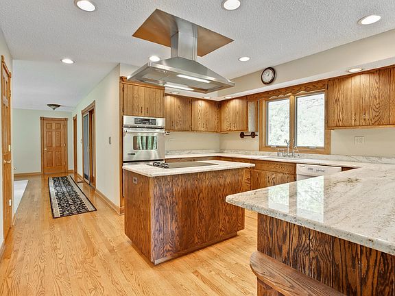 If you are craving expansive views and space while in a friendly lakeside community, this is it! Located in unincorporated Lake County with Wauconda schools, this home is located on .86 acre on a charming pond and across the street from the neighborhood lake. Hillside ranch with four bedrooms and two full baths on the upper level. The lower level is a walkout with a finished recreation room and bar with half bath that will play host to many gatherings. The kitchen has some newer features like granite countertops and a stainless built in double oven and cooktop. New carpeting throughout and freshly painted. Brick fireplace on the upper level, natural stone fireplace in the lower level. Master bedroom with master bath and walk-in closet. Flexible floorplan. Storage. Mature trees.