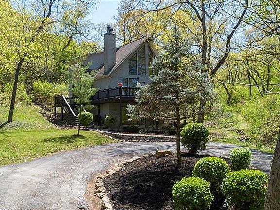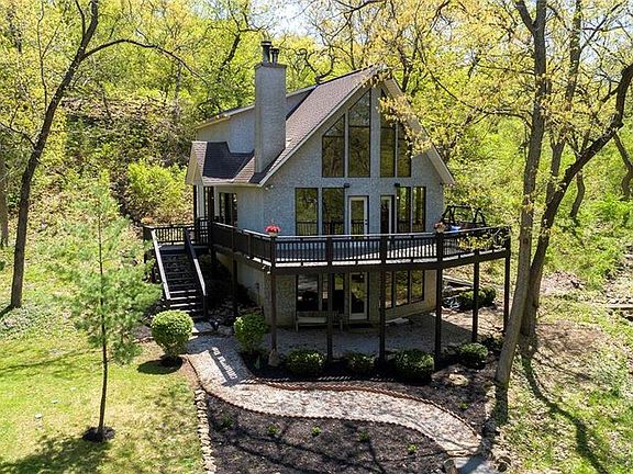 Step into this Colorado-style retreat nestled away on 2.82 acres of natural landscape and woods. Be blown away the second you walk in by the cathedral ceilings, windows galore, tons of natural light, stunning views, & grand rock fireplace. Large master features walk-in closet w/built-ins, double vanity, skylight, jetted tub. Finished walkout LL w/wet bar. Stunning setting with wooded trails, firepits for outdoor entertaining, access to pond & lake for fishing. This is a home you don't have to take a vacation from!