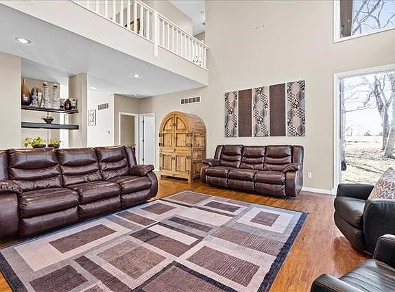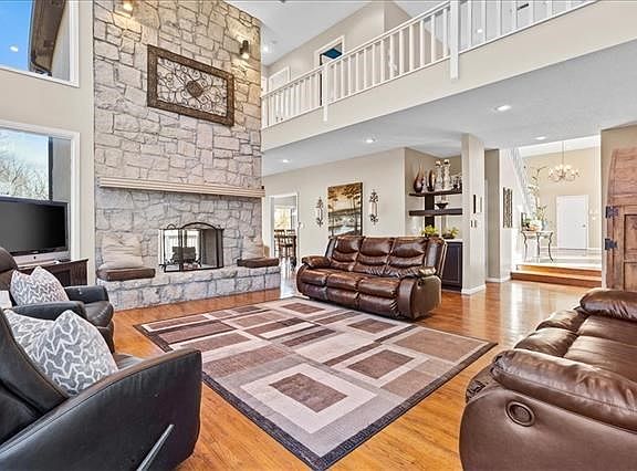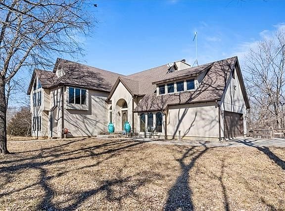 Take a short drive to Paola and tour this spacious home nestled in on close to 40 acres of trees, listen to stream running nearby and catch a glimpse of deer and wild turkeys stopping by to say hello. The home has five bedrooms with a primary bedroom suite on the main floor. Four secondary bedrooms are on the second floor with two full bathrooms. Every room and every corner in this home has a special view. High ceilings and cathedral like windows bring the beauty of the outdoors inside at every turn. Main floor features kitchen, breakfast nook, three gorgeous stone fireplaces. Hardwood floors are stunning with a lovely stone and wood mosaic in the entry way. Attached two car garage. The outbuilding is large with workshop and two more garage parking spaces. Unfinished walkout basement is filled with light and potential for another fireplace. This property is an absolute gem with endless possibilities to create your forever home. 2022-04-11
