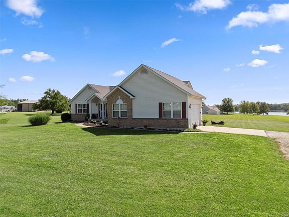 Welcome to your serene oasis nestled on 3+ acres of tranquil countryside. This charming ranch offers a lifestyle of comfort & relaxation amongst a picturesque setting. Step into the inviting living room adorned w/ soaring vaulted ceilings, hardwood floors, & cozy W/B fireplace. The kitchen features granite counters, SS appliances, tile backsplash, & under-cabinet lighting. The spacious primary bedroom suite awaits, complete w/ vaulted ceilings & walk-in closet w/ custom shelving system. The updated primary bathroom is a sanctuary w/ a tiled shower, luxurious stand-alone tub, & dual sinks. 2 additional bedrooms each w/ walk-in closets, a full bathroom, laundry room, & separate dining room round out the main level. Outside, entertain or unwind on the spacious deck or covered patio, overlooking the large level yard that is ideal for entertaining. Enjoy the tranquility of the lake, stocked for fishing & perfect for boating adventures. Unfinished walkout lower level! See it today!
