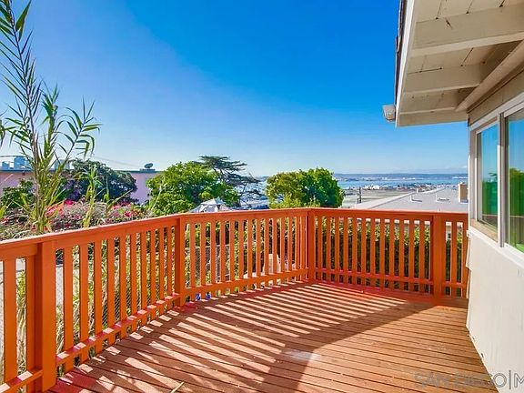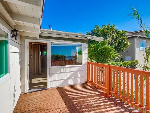 View two-bedroom house in Middletown with a separate legal 1 bedroom apartment. Sweeping views from downtown to Mount Soledad. Built in 1930 by seller's grandfather. Two large garages with block construction. Potential for parking 7 cars offstreet. Quiet house program installed in 2005 on both units. The apartment is rented for $1650 month-to-month and was built around 1950. The house has two bedrooms, a huge great room, new flooring, knotty pine walls, beamed ceilings, fireplace, and a water view deck. RM-2-5 zoning allows for 4 units and this home could easily, if permitted, be divided into more units. The apartment is built over the garages and has an incredible view and a private yard.