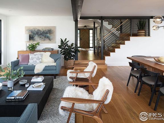 Tucked on a quiet, tree-lined street in Boulder's sought-after Newlands neighborhood, 2828 4th Street is a refined five-bedroom, six-bathroom residence that blends timeless style with modern comfort. Reimagined in 2020 by Surround Architecture and Rob Luckett Builders, the home reflects exceptional design and craftsmanship-just blocks from North Boulder Park, Ideal Market, and scenic trailheads. Inside, 7" site-finished white oak floors and steel architectural accents set a tone of understated elegance. The open-concept great room, dining area, and kitchen flow together seamlessly for effortless living and entertaining. A stone fireplace and Christina Watka art installation define the great room, while the chef's kitchen features a 48" dual-fuel range, honed Carrera marble countertops and backsplash, custom cabinetry and shelving, a walk-in pantry with stone surfaces, and an oversized island. Sliding doors extend the space to a large deck for indoor-outdoor living. The main-level primary suite includes custom built-ins, a walk-in closet, and a spa-like bath with radiant heat, herringbone stone floors, dual vanities, soaking tub, and glass shower. Across the hall, a bright family room with en-suite bath offers flex space as a guest room or office. A powder room and laundry complete the main floor. Upstairs, three bedrooms provide versatility-one with an en-suite bath, and two sharing a designer bathroom and walk-in closet. A second laundry closet adds convenience. The lower level features a lounge, media room, full bath, and a wet bar with wine fridge and dishwasher drawer. The backyard offers a private east-facing patio, stone fireplace, and a detached shed ideal for a studio or retreat. With an exceptional layout, a main-floor primary suite, & option for a second main-floor bedroom, 2828 4th Street offers a perfect blend of beauty and functionality in one of Boulder's most sought-after locations.