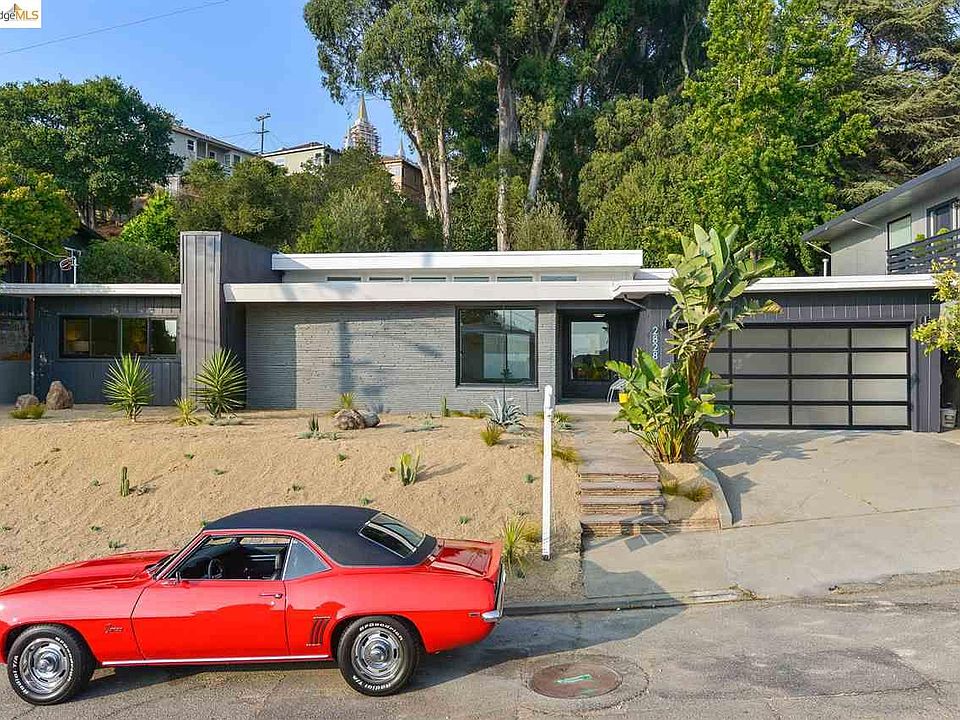 Quintessential mid-century architecture meets contemporary design in this sexy Lincoln Highlands remix! 2828 Alida is all about the luxury of space and light. A high bank of clerestory windows illuminates the main volume and expansive ceiling plane. Set back from the street, this 1-level structure offers a roomy, easy-living layout that celebrates its sense of spaciousness and sightlines throughout. The U-shaped floor plan embraces a generous wrap-around patio and sunny backyard as your indoor and outdoor life become one. The soft glow of the globe lights harken back to the original era, while new tile, waterfall countertops and designer wallpaper bring a fresh sense of today.* With extensive renovations that include $27,000 of structural work, drainage in accordance with a structural engineer, new electrical panels, Viking appliances, and designer landscaping, this home deserves a little R-E-S-P-E-C-T!* The Scoop -Built-in 1948 by Lapham Co. -Renovated in 2018 -2656 interior sq. ft. (aprx.)** -8505 sq. ft. lot (aprx.)** -4 bedrooms/ 2.5 bathrooms*** -1.5 car garage with interior access -Master suite has a walk-in Elfa closet, master bath with oversized shower and glass subway tiles, a detachable shower head plus overhead rain-style shower head, wall-mounted double vanity and Marrakesh-inspired floor tiles -Fourth bedroom/office is located away from the rest of the bedrooms -Hall bathroom features floating vanity and wall mount Duravit toilet with Geberit in-wall flush -The gas-start fireplace features a column of dimensional tile with custom lighting -Wide-plank matte European oak floor throughout -New windows and doors throughout* -New garage door and motor* -New water heater* -New electrical and sub-panel plus new wiring in all but 3 bedrooms* -New HVAC ductwork throughout* -Outdoor: large flagstone patio, lawn, fire pit area, raised beds for edibles -Peek-a-boo Bay views and of Oakland's landmark, Mormon Temple -Kitchen features: central island waterfall countertops and ample storage, Viking appliances, engineered quartz counters with double waterfall counters, Grohe faucet and undermount sink Located in Lincoln Heights where many streets have sidewalks, and perched in a sunny spot above Dimond shops, park and pool. Close to the glow of the Mormon Temple, Greek Orthodox Temple (do not miss their annual Greek Festival), and down the road from Joaquin Miller Regional Park! *"New" upgrades completed in 2018. **Per public record. ***Bed/bath count per approved plans and Open Homes measurements and may differ from public record.