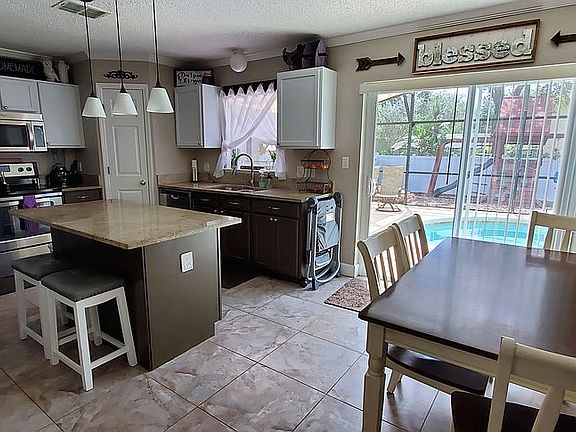 Updated 4 bedroom, 2.5 bathroom home on oversized, 1/3 acre, corner lot, located in the Rock Springs area of Apopka. Updates to the home include roof only 2 years old, new beautiful white vinyl privacy fencing, new upgraded A/C, salt water conversion, new upgraded variable speed pool pump, and a solar panel heater. Home features porcelain tile, carpet in the bedrooms, and wood laminate flooring. Grand entry way with beautiful staircase leads up to the 4 bedrooms, including the master bedroom. Master includes his and hers walk in closet and private on suite bathroom with garden tub, double sinks, and separate shower/toilet area. Throughout the home there are several archways adding to the ambiance of the home and all rooms/windows, except the bonus room, have been updated with classy faux wood blinds. Kitchen has granite counter tops, appliances only 5 years old, and a breakfast nook. Off the kitchen are the formal dining room and large living room. Living room, dining room, and kitchen have all been updated with elegant crown molding. A bonus room downstairs can be used as an office, guest room/5th bedroom, play room, or school room. This home is not lacking in yard space. A well manicured front yard is accompanied by beautiful oak trees lining the property. The large backyard has ample space for everything from play area that is already mulched, to a pavered grilling area to a large area that was being used as a vegetable garden. Backyard is also equipped with a beautiful hurricane anchored 8' x 12' shed that was built to compliment the house with matching paint and shingled roof. A few great surprises in the back yard include an avocado tree, large blueberry bush, and a lemon tree. The 8 x 10 pavered grilling area gives a nice extra space outside of the pool area for grilling and hanging out. Large screened in pool area is perfect for entertaining or relaxing on those hot Florida days. The pools conversion to salt water makes maintenance no longer a chore, and being heated with solar panels, makes swimming almost a year round luxury. 2 car Garage is outfitted with Safe rack shelving which gives additional ample storage space and garage is equipped with keyless entry pad. Lorex outdoor security cameras installed around perimeter of home and Simplisafe alarm system installed inside of the home, including cameras, smoke alarms installed, a water sensor, door bell. Front door is equipped with keyless entry lock system. Neighborhood has community park with playground and newly painted basketball court. Close to major highways, Kelly Park, and Wekiva Springs. Don't miss your chance to live in this beautifully updated pool home!