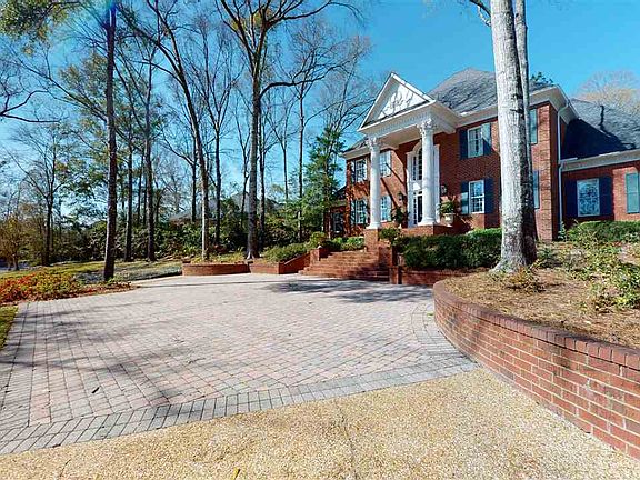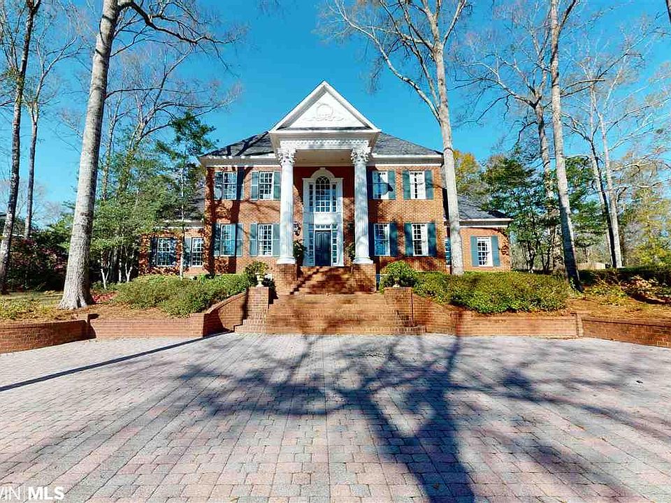 GREAT NEW PRICE $819,750!! Magnificent Colonial Home in Charleston Oaks overflowing with attention to detail! This 5-bedroom, 4.2 bath home sits on 2 lots on a cul -de -sac in a very desirable West Mobile neighborhood. High ceilings, large rooms, hardwood & natural stone floors, extraordinary crown and chair rail moldings, and glorious built-in storage abound. You are welcomed through the front door of this stately red brick Colonial into a two-story foyer with a grand circular stairway flanked by gilt Corinthian columns and pediments and inlaid marble floors. There are living and dining rooms on either side of the foyer which flows into a very large family room with a wood-burning fireplace with gas starter, custom built-ins & wet bar and opens onto the back porch. A handsome wood-paneled study opens into a large master bedroom with gas log fireplace, separate shoe closet, and sitting space. This room features an intricate coffered ceiling and opens to the back porch and also leads into a spacious octagonal master bath with separate shower with steam, jacuzzi tub, double vanities, and large separate walk-in closets. Kitchen with custom lighting has marble counters and travertine floors with beautiful custom blonde cabinetry with a breakfast bar, breakfast room dining, a desk area, and a lovely glass front china cabinet. Upstairs you will find a large bedroom with an ensuite bath and huge walk-in closet. Two additional bedrooms share a jack and jill bath and good closet spaces. There is a good-looking den on the second floor as well and a fabulous craft/wrapping room. The entire third floor is the 5th bedroom with a full bath but is presently being used for a theatre room, play space, and exercise room. The fenced backyard has a covered open porch, a fish pond with a fountain plus a sparkling saltwater gunite pool with plenty of patio space for entertaining. Large laundry room, 3 car attached garage, irrigation system, front and back stairways, speakers in the house