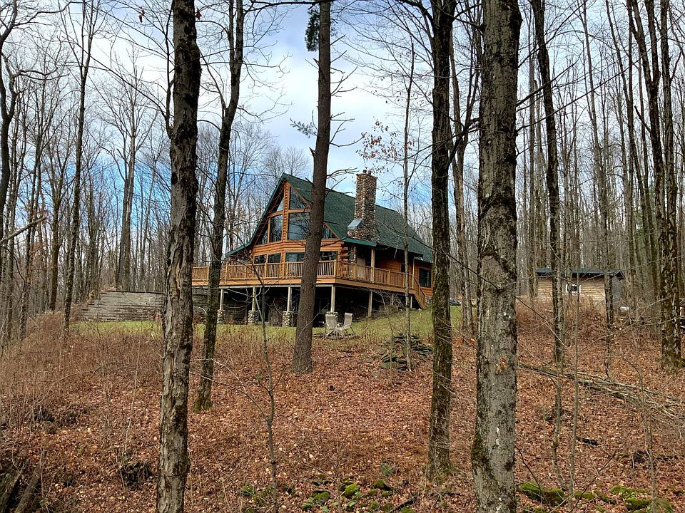 15 acres with 1,772 Sq Ft Log Home for Sale Near Salmon River in Orwell, NY! Turnkey Hunting, Fishing, Snowmobiling Outdoor Paradise! 15 acre Log Home with woodland hilltop setting overlooking small pond with 2 large barn/shops. Perfect location for Log home comforts and storage for boats, RV, tractors, snowmobiles, and ATVs. This country home paradise comes fully outfitted with all furnishings, rec hall components, and a tractor with 7 attachments as part of the sale. Home is move-in ready! Located in the best of the best for outdoor life as right off the driveway are ATV and snowmobile trails, minutes from Upper and Lower Redfield Reservoir, Salmon River, and 20 minutes to Lake Ontario. State Forests are minutes away for Northern Zone hunting, hiking, and exploring! Home Features: 1,120 square feet of first-floor living space, loft is 652 square feet, finished basement is 900 square feet. Large Family room with vaulted ceilings, fireplace combined with modern kitchen overlooking woodland acreage. On first floor, master bedroom, master bathroom, and second bedroom. Upstairs loft has large bedroom (sleeps 4). Finished basement has bar, pool table, wood stove, walkout door to jacuzzi. Large covered porch and deck off front overlooking woodlands. Built with craftsman's touch! Detached Garage: 32 x 40 heated garage with concrete floor and upstairs storage with ramp. Pole barn: 40 x 60 shop area, concrete floor with heat, vehicle lift, paint room, and utility room. Tractor: 2013 Kubota with attachments: blower, bucket, backhoe, belly mower, brush hog, stone rake, salt spreader. 2 minutes to Atlmar, NY (Salmon River Fish Hatchery). 10 minutes to Pulaski, NY and Rt. 81. 35 minutes to Syracuse, NY or Watertown, NY. Quality built log home in a 4 season Outdoor Recreation Paradise! All the best that NY has to offer is right in your backyard! 15 acres, Log Home, 2 barns/shops priced with all furnishings, appliances, rec hall components, tractor and attachments.