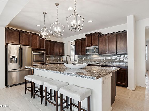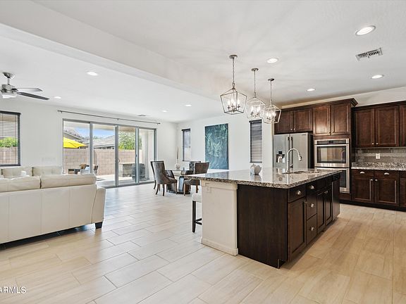 The seller's career is taking them back east and they have prioritized a quick sale over getting every last penny! This gives YOU the unique opportunity to own a very rare single-story home with a POOL in the desirable Lehi Crossing community in Mesa. This property is move-in ready and has some remarkable features that will appeal strongly to buyers! They add hugely to the home's value and should not be overlooked. Beyond the simple fact that this home is a highly sought after floor plan, you won't believe all the upgrades and updates this home has and was NEVER smoked in. As you enter this home you are welcomed by a light and bright entry with a custom shiplap and neutral porcelain plank tiles throughout. The MASSIVE kitchen island is a true statement piece offering the perfect area for entertaining your guests and family. Home is even wired for surround sound to kick it up a notch. This home has a large, open great room PLUS a formal dining room that could be converted to a 4th bedroom. The kitchen has granite counters, SS appliances and double oven with recessed canned lighting. The 3-car garage has epoxy floor installed offering extra storage space. Pool has a waterfall feature, and the backyard has lots of travertine tile and pool tile that were recently acid-washed. Almost-new washer/dryer will convey with home. The property is surrounded by single-story homes. Lehi is a gated community offering you added peace of mind and reduced traffic. The neighborhood has wide streets, sidewalks and is very quiet with several grassy parks to enjoy. Less than 20 minutes to Sky Harbor airport and downtown Scottsdale and Phoenix.