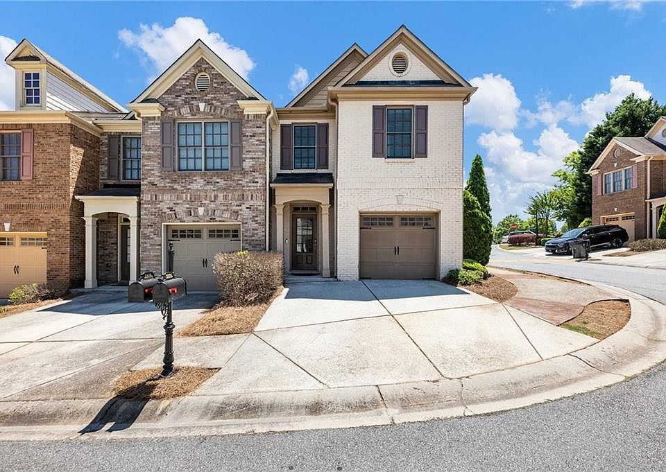 Welcome Home! This END UNIT townhome in desirable gated community Brynfield is move in ready with NEW interior paint, NEW carpet and NEW hardwood flooring. Welcoming foyer with beautiful hardwood flooring throughout main level leads into a spacious fireside great room overlooking eat-in kitchen with granite countertops, tile backsplash, breakfast bar and stainless steel appliances. Upstairs features owner's suite with vaulted ceiling and bathroom with dual vanity, separate shower, soaking tub, linen closet, tile floor and walk-in closet. Two additional bedrooms and full bathroom with a separate laundry room round out the second level. Backyard includes grilling patio and partially fenced yard. Community swimming pool & playground within walking distance! Conveniently located near I-85, schools, H-Mart, restaurants and entertainment.