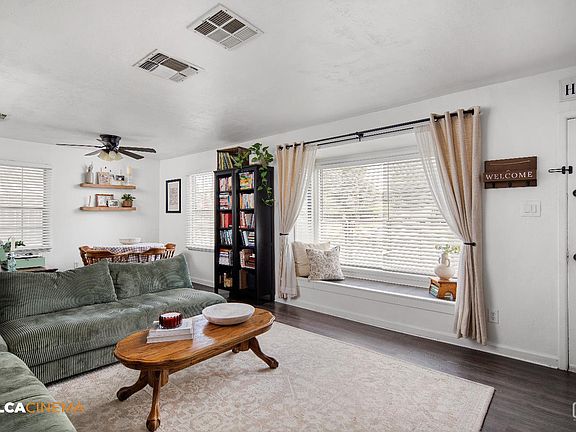 Charming turnkey home located in the desirable La Cresta neighborhood, just 5 minutes from Bakersfield College. This cozy home features 3 spacious bedrooms, including one with a stylish feature wall, and an updated bathroom with new flooring, light fixture, and mirror. Enjoy an eat-in kitchen plus a separate dining room, perfect for family meals and entertaining. The bright living room boasts lots of natural light and a charming window seat with views of the park across the street. Ceiling fans in every room keep the home comfortable year-round. Outside, a large backyard is a blank slate ready for your vision, complemented by a versatile shed ideal for storage or a home gym. Additional benefits include utility trailer parking and a covered carport. Ideal for first-time buyers seeking a stylish, move-in-ready home in a quiet neighborhood.Don'tmissout!