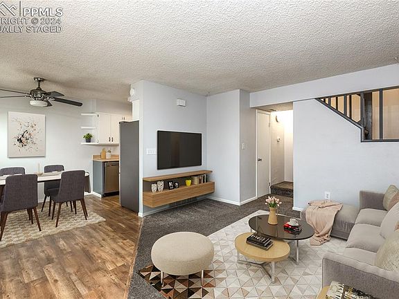 Updated and move in ready townhome just minutes from Palmer Park and amenities. Upon entering the home you will be greeted with an open and usable floor plan featuring cool gray tones, updated flooring and a cozy fireplace. The kitchen has newer stainless steel appliances, newer flooring and access to a dedicated covered carport for the ability to walk right into the home and protection from the elements for your vehicle. Upstairs features 2 bedrooms with walk in closets and a large full bathroom. The newer furnace and hot water heater as well as vinyl windows offers peace of mind to the next owner. Outside within the community there is access to trails to walk your dog or go for a quick hike, and plenty of parking for guests. You won't want to miss seeing this one!
