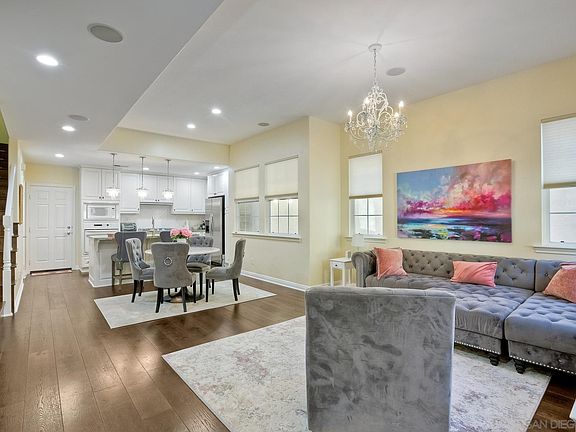 Shows like a Model! Highly Desirable 4 bedroom Upgraded Beacon Point Plan in Liberty Station near Promenade! Stunning remodeled Kitchen with Granite Countertops, Designer Crystal Light Fixtures, Pantry Closet, Custom Paint, Kitchen Island. Beautiful Wood Floors! Spacious Master Suite with Juliet Balcony with Designer Closet and expanded Master Closet for Storage in Master Bath. All bedrooms have their own full bathroom. 3rd Floor loft has bedroom and full bath. Designer light fixtures throughout. Recent Exterior paint with newer awnings. Epoxy Flooring in Garage with Lots of Storage Cabinets. Oversized courtyard. Patio set Conveys! A Must See!!!!!