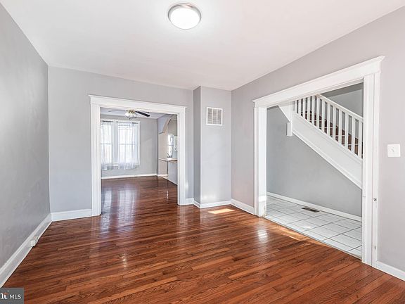 Spanning over 1,300 sq. ft., this charming home features wood flooring throughout and a bright, inviting layout. The main level offers a spacious living room, a formal dining room, and a beautifully updated island kitchen—perfect for entertaining. A sunroom provides additional living space, ideal for relaxing or a home office. Upstairs, you'll find three generously sized bedrooms and a full bath. The unfinished basement offers ample storage. Enjoy outdoor living in the rear yard, plus the convenience of a two-car parking pad. A fantastic opportunity—don’t miss it!