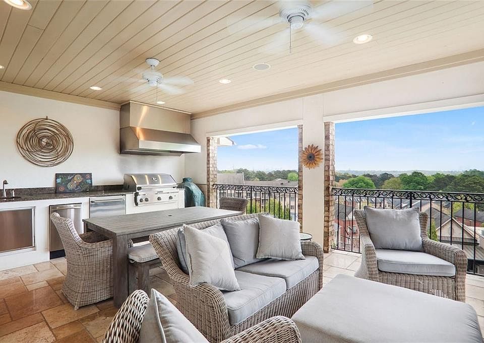 Spectacular brick and stone townhome in the gated community of AVIGNON of PACES VIEW. Located in Vinings, with one of the most UNBELIEVABLE Views in the City; a Skyline View of BOTH Midtown and Buckhead! See it from this home's unique Loggia (three walls with one side open air) on the upper level with its stone patio, incredible views, large seating area, and full grilling/smoking station. An Entertainers Dream with a View! This is four levels of luxury, four bedrooms and a full office, masterful stone and brick construction made ever-so-accessible by the wood panelled ELEVATOR. Molding detail and millwork is impeccable. See the three-story grand artfully curved stair case with solid wood banister, rounded corners on all the walls, hi-end appliances in the kitchen, updated owners suite, updated lighting for "sparkle", newly finished hardwoods throughout, and high-end sound throughout. This townhome is located in charming, historic Vinings, with its "old world" feel, and its walk-ability to trendy shops and restaurants. This is Cobb County where taxes are some of the lowest in the great Atlanta Area, and a substantial exemption for seniors (62+) exists. Get ready for summer by the pool! Paces View has an expansive clubhouse and pool too.