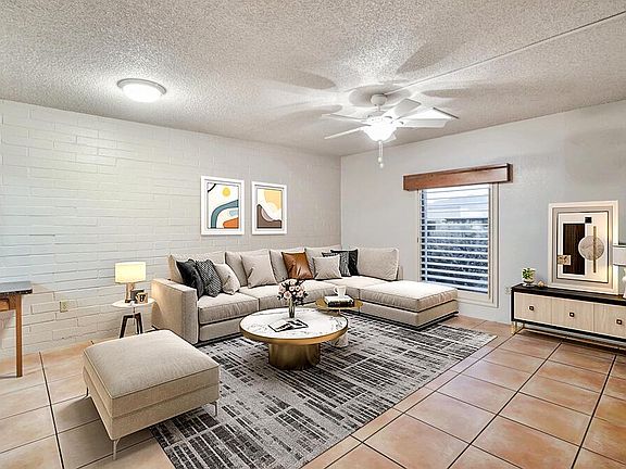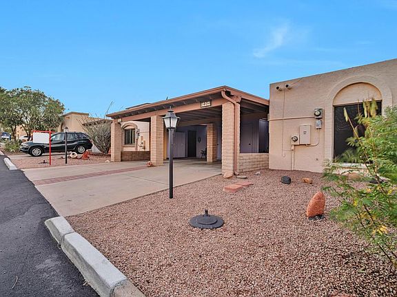 Embodying sophisticated comfort, with an inspiring lifestyle! This townhouse has been nicely updated. Ceramic tile flooring throughout and fresh interior paint. The kitchen remodel is transformed with new cabinets, granite C-tops, new sink and faucet. The master suite features an updated tiled roll in shower with a new vanity & custom lighting. Plantation shutters grace every window. It's nice and bright with all the skylights and has a desert arroyo behind the backyard (no Neighbors). As you lounge outside on the patio the desert wildlife will greet you everyday. Roof recently re-coated, HVAC replaced 2012. Solar power is owned & you will benefit from extremely low utility bills. Washer & Dryer in AZ room that gives many options for hobbies, extra dining, game room, plus more. EXQUISITE!