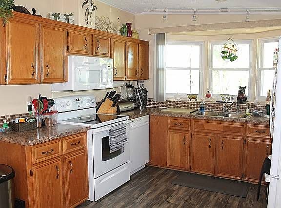 2 BR 2 BA 1344 SQ FT Home, Unfurnished, Open Concept, Beautiful oak kitchen cabinets, newer Appliances, Loads of storage, Both bedrooms have walk in closets, Wheel Chair Ramp, New Double Pane Windows, New Countertops, Covered Patio, New Laminate Flooring, painted Covered Driveway, new Washer And Dryer, New AC and heat pump in 2016, Metal Roof, Loads Of Updates. Golf Cart Included