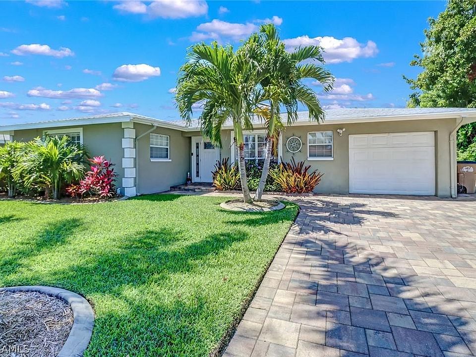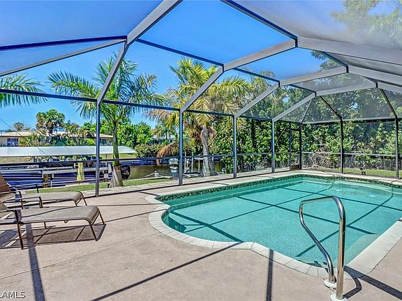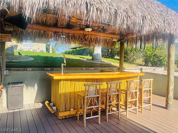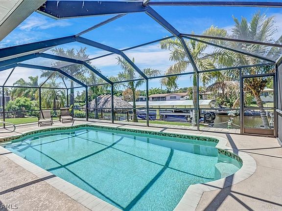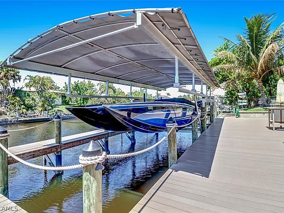 BOATERS PARADISE DIRECT GULF ACCESS NO BRIDGES! Enjoy spectacular sunsets with a SOUTHWEST EXPOSURE while sitting at your PRIVATE one of a kind TIKI BAR. Composite dock full electric and water with a 16,000 lb BOAT LIFT/CANOPY and a jet ski hoist. The captains walk is wrapped around the entire boat for your ease and convience. This property has been fully remodeled with a new roof and space for 3 vehicles, room to add a 3rd bedroom if desired, the driveway also has new pavers! The one stall garage has extra space for a fridge with shelving, wash tub, washer/dryer. Beautiful open concept kitchen with granite countertops, breakfast bar as well as formal dining area. Newer kitchen appliances with remarkable furnishings with complete remodeled bathrooms. Step out to the spacious pool area with screened in cage along with additional patio space for your guests to relax and enjoy paradise! Completely landscaped with sprinkler system in place, gorgeous palm trees front and back as well as additional pavers and extra space along the side of the house for any of your extras. NO FLOOD INSURANCE! Call today for a private showing! Boat for sale as well, seperately call for details!