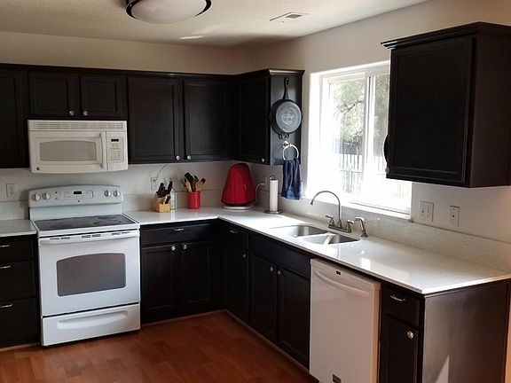 Updated home in a quiet neighborhood offers laminate wood look flooring throughout, new recycled glass counters and back splash in kitchen, and includes refrigerator, microwave, dishwasher and stove. The remodeled master bath has quartz counters and an oversize jetted tub with shower. There is an extra 104 sq ft addition to the master bedroom with french doors that open to the wrap around back deck. Yard is fenced for privacy.