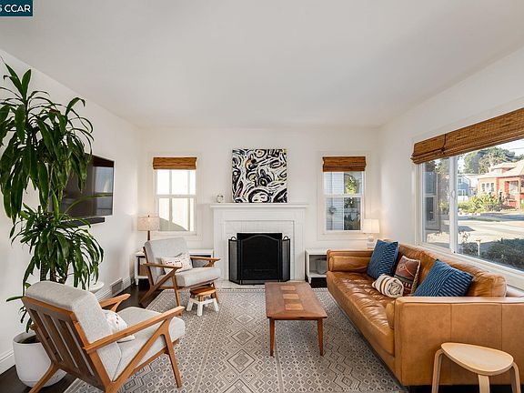 Olé ! Pop art Spanish Mediterranean bungalow in the coveted East End of beautiful Alameda. Situated on a premium corner lot, this sunny abode from 1925 marries old-world charm and contemporary aesthetics. The 2bd 1ba split level floorplan is both elegant and efficient with breakfast nook/office, large garage/workshop and laundry room. common areas. Warm & welcoming curb appeal with chic drought-resistant landscaping & a mini bistro patio to enjoy your morning coffee. A glorious elevated backyard comes with a flat play zone, pergola lounge area, and a detached bonus structure with endless possibilities (art studio, home office, gym, ADU potential). The pièce de resistance is the large public mural “Cosmic Spiral” (2020) by renowned artist Todd Kurnat (a.k.a. Inkletterman) displayed on side of 2828 San Jose and is included with the sale of the property. Located in arguably the best neighborhood in Alameda this East End gem offers proximity to shopping/dining on Park Street, South Shore Center, top schools, recreational parks, and more. A rare combination of form and function, this stylish Spanish bungalow is a work of art seeking its new curator.