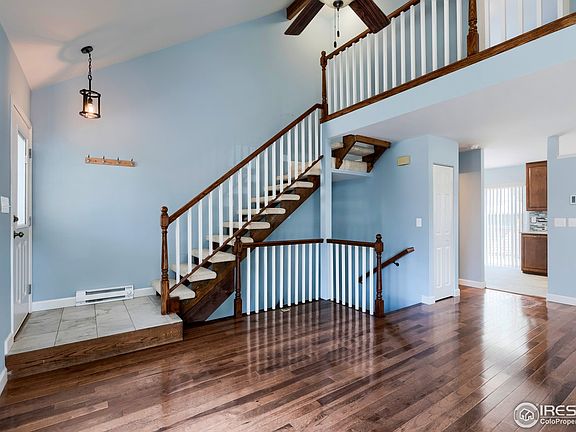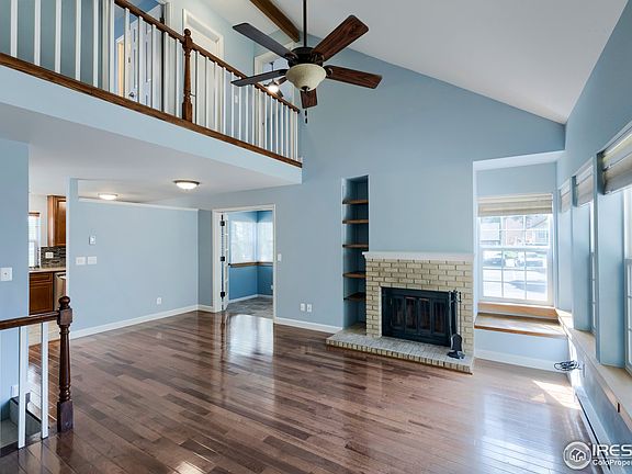 This beautiful condo is located in midtown Fort Collins, just minutes from Colorado State University and Old Town! This home has seen many recent updates, including a brand-new roof, new windows and exterior doors and a new water heater. Vaulted ceilings and new hickory hardwood floors welcome you into the large living room, which features a cozy fireplace. The eat-in kitchen showcases a lovely tile backsplash and stainless steel appliances. A bright office with French doors makes for a great work space. The main floor also includes a powder room. Oak railings lead you upstairs to a full bath and two large bedrooms, one with balcony access and the other with a walk-in closet. A finished basement expands the living space with a third bedroom and 3/4 bath. Enjoy views of the community tennis courts and open space from the spacious deck in the backyard! The community also offers a clubhouse and pool! Come see this fantastic property today!
