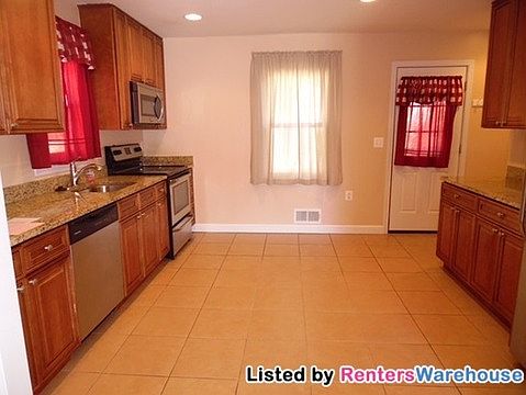 Single Family Home with 4 bedrooms and 2 full bathrooms located in Baltimore Highlands for $1795 per month. Updated kitchen with stunning cabinets, granite countertops, and stainless steel appliances. Has 3 bedrooms on main level that share 1 full bathroom. Basement has living area with 1 bedroom and 1 full bathroom. Has driveway and street for plenty of parking. Spacious fenced in backyard. Pets allowed on case by case basis with deposit. Light rail within walking distance. 2 parks. Over-sized brand new washer and dryer. Call Eileen for showings 410-984-2554.