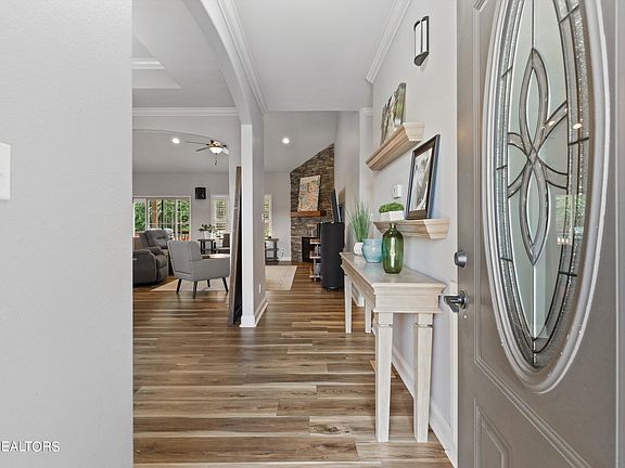 This spectacular custom designed and remodeled home sits on a nice lot with pretty views in the heart of the city of Maryville. This home features 3 bedrooms on the main and one bedroom/bonus room with bathroom over the garage to total 4 bedrooms, 2 full baths, and 2 half baths throughout. Owner has built an entire new kitchen with custom cabinetry (every bell and whistle included), quartz tops, a 6-burner Z-line range with double oven, other top notch appliances, quartz backsplash, and extra large island. New LVP flooring is throughout the house for easy maintenance and durability. Vaulted great room features a gas fireplace and surround speaker system. (Entire system is available for purchase also.) Formal dining has a double trey ceiling and is open to the kitchen/great room area. Split bedroom plan leaves a primary bedroom also with trey ceiling on one end of the house. All bedrooms are spacious with ample closet space (including professional custom closet systems). Primary bath features double vanity with granite top, soaker tub, and tiled shower. The primary closet is generously apportioned and also features custom closet systems. 4th bedroom or bonus above the garage offers a half bath and closet. The over-sized garage will accommodate most any length vehicle. Out back the landscaping is phenomenal with covered rear deck, patio, and extensive landscaping including paver patio, stone steps, and tiered yard. The house backs up to a green space that can be used by the homeowner. This home is a masterpiece and priced to sell!